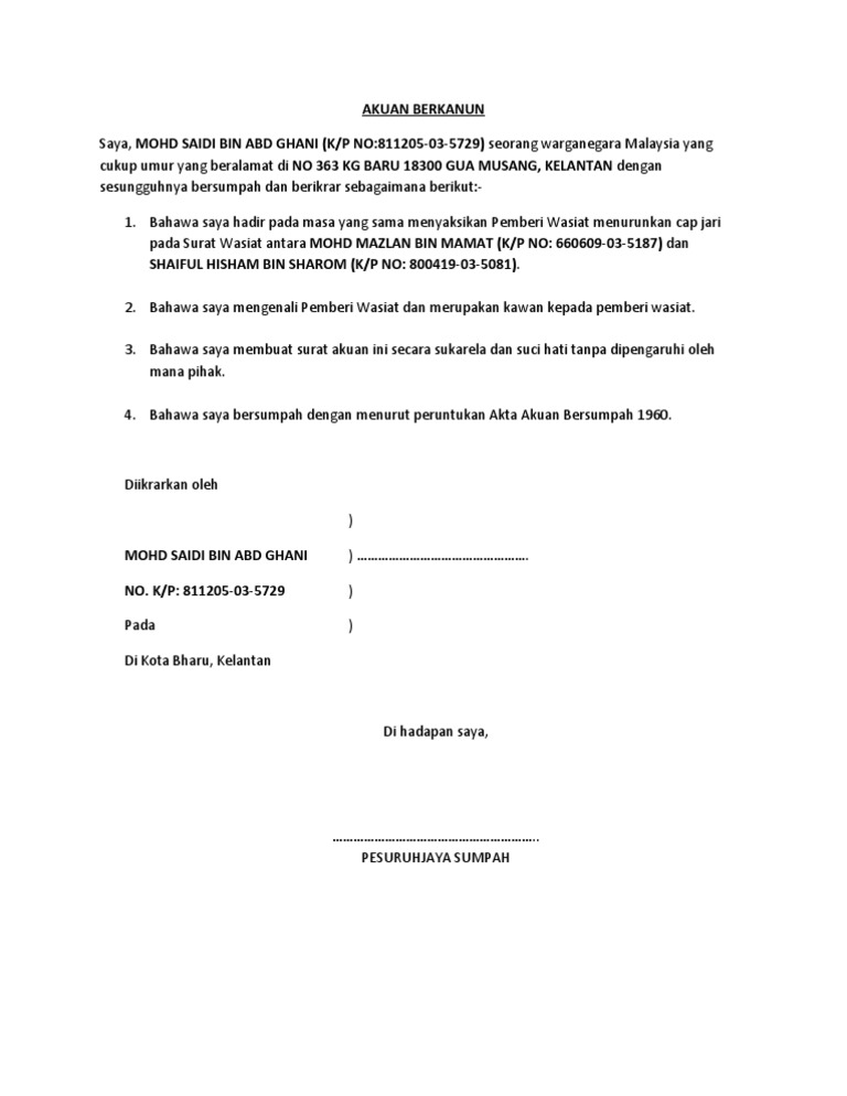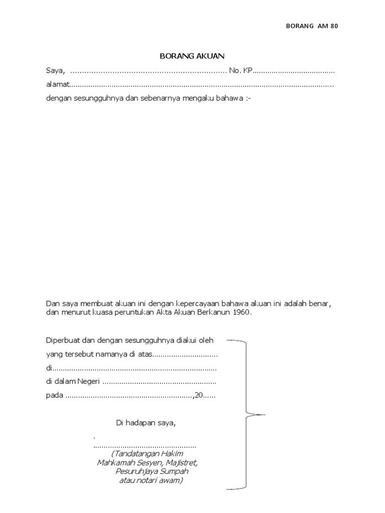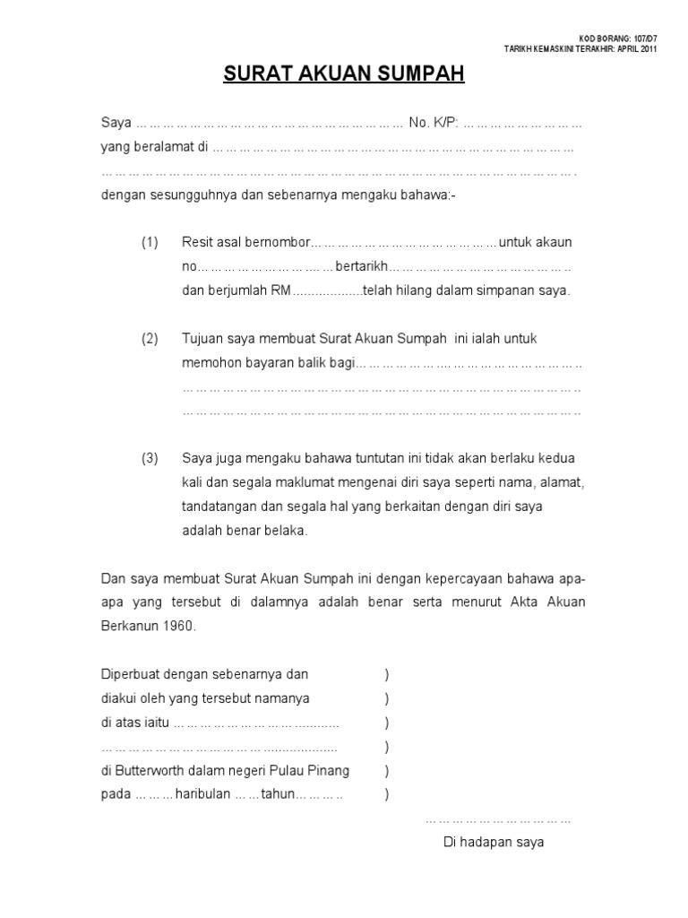 Contoh Surat Akuan Sumpah Berkanun Akta 1960 Free Download Images