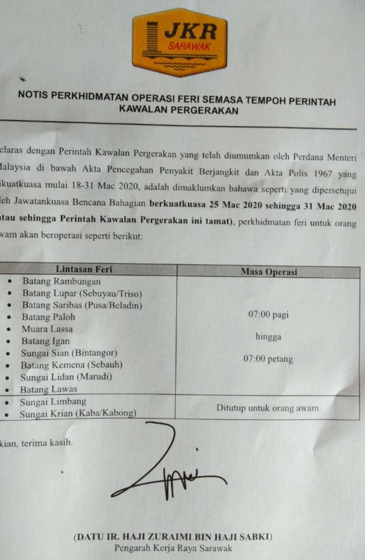 Notis Masa Perkhidmatan Operasi Feri Pusat Khidmat Adun N 27 Sebuyau Facebook