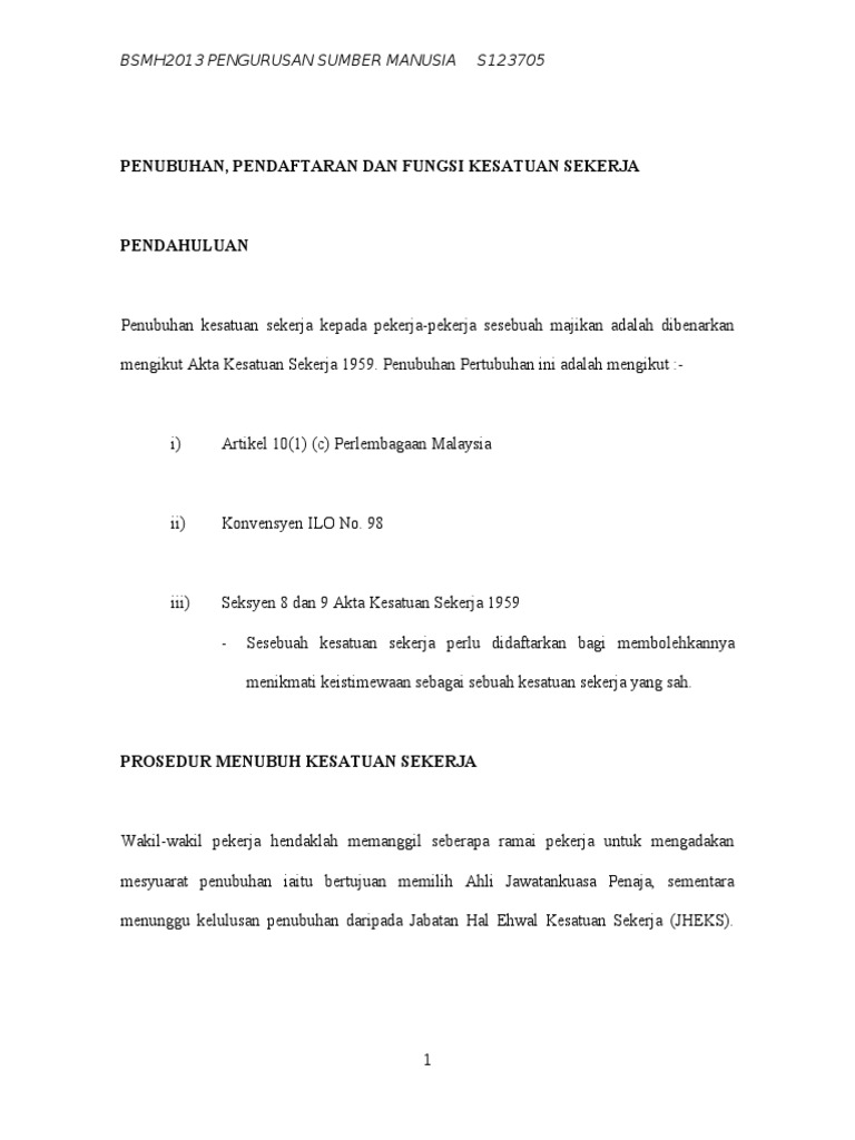 132810275 Penubuhan Kesatuan Sekerja Pdf