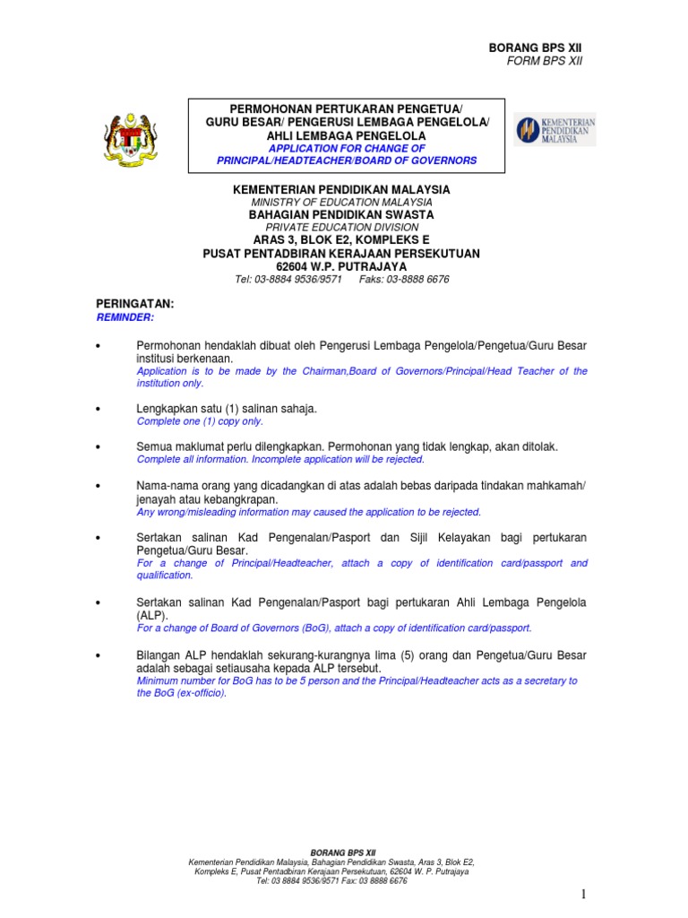 Borang Bps Xii Permohonan Pertukaran Guru Besar Pengetua Alp Sources Applications Of Cryptography