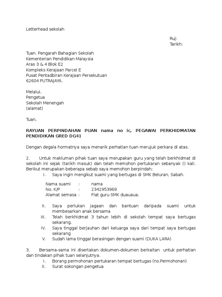 Contoh Surat Rayuan An Pertukaran Mengikut Suami Cute766