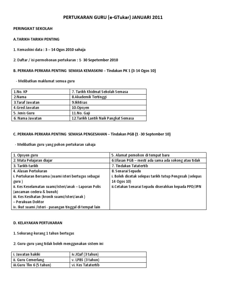 Pertukaran Guru E Gtukar Januari 2011 Peringkat Sekolah