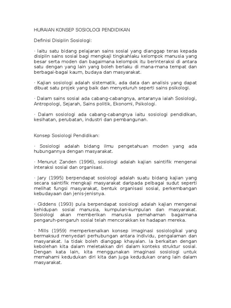 Huraian Konsep Sosiologi Pendidikan Definisi Disiplin Sosiologi