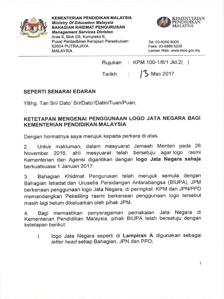 Untuk Kegunaan Rasmi Sahaja Bahagian Istiadat Dan Urusetia