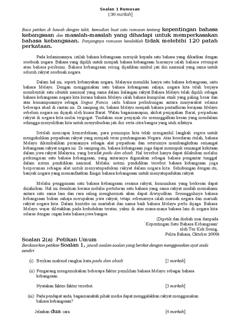 Kepentingan Bahasa Kebangsaan Masalah Masalah Yang Dihadapi Untuk Memperkasakan Bahasa Kebangsaan Tidak Melebihi 120 Patah Perkataan