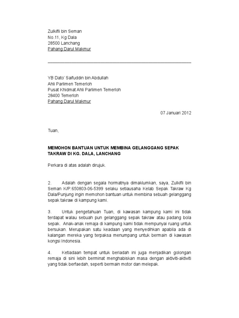 Contoh Surat Rasmi Mohon Bantuan Kewangan Surat Rasmi 1