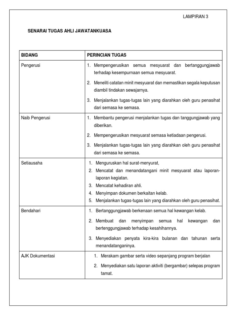 Senarai Tugas Ahli Jawatankuasa