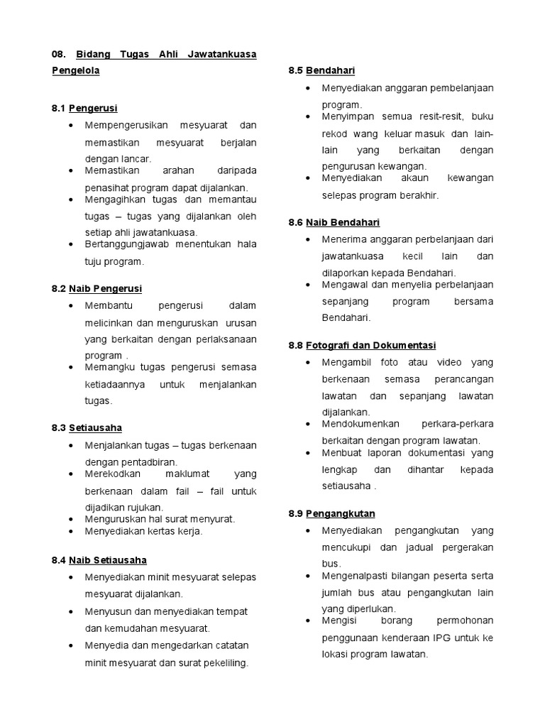 Bidang Tugas Ajk Pengelola Lawatan Pke 3023