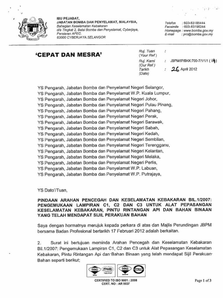 Bomba Pindaan Arahan Keselamatan Kebakaran 1 2007