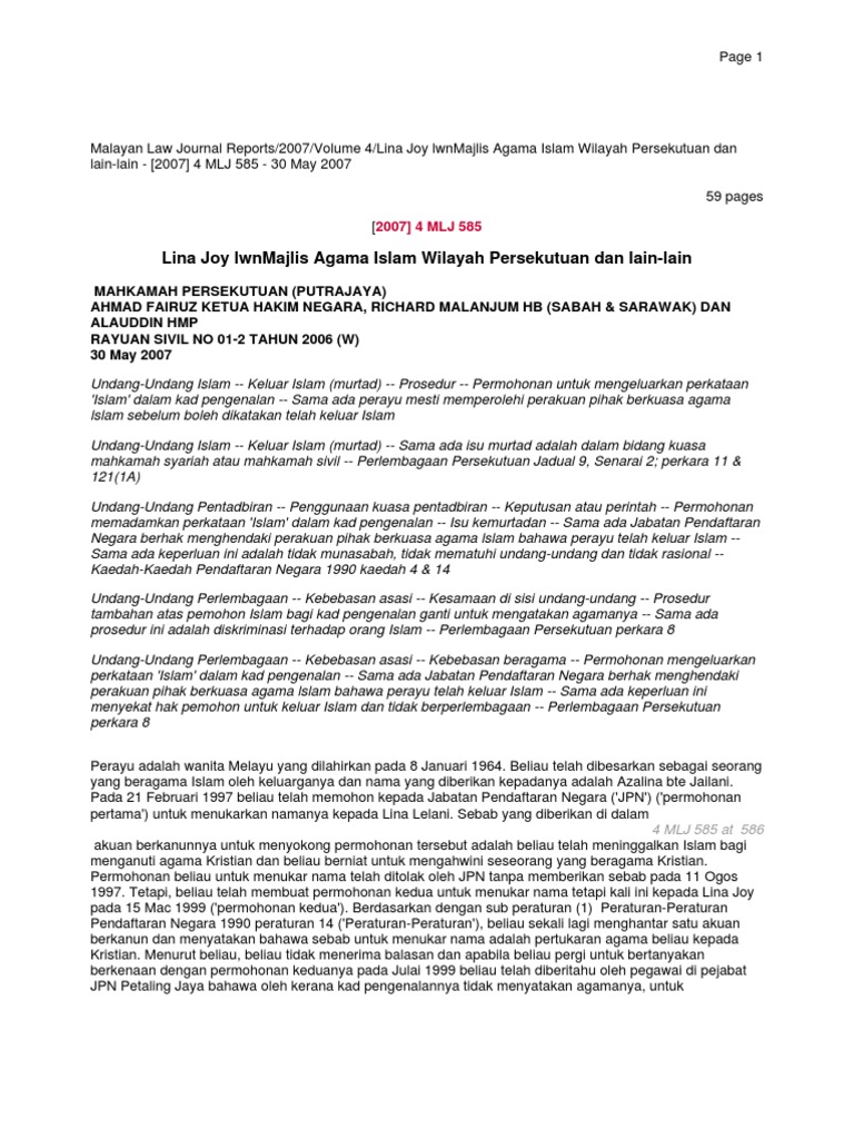 Lina Joy Lwnmajlis Agama Islam Wilayah Perse