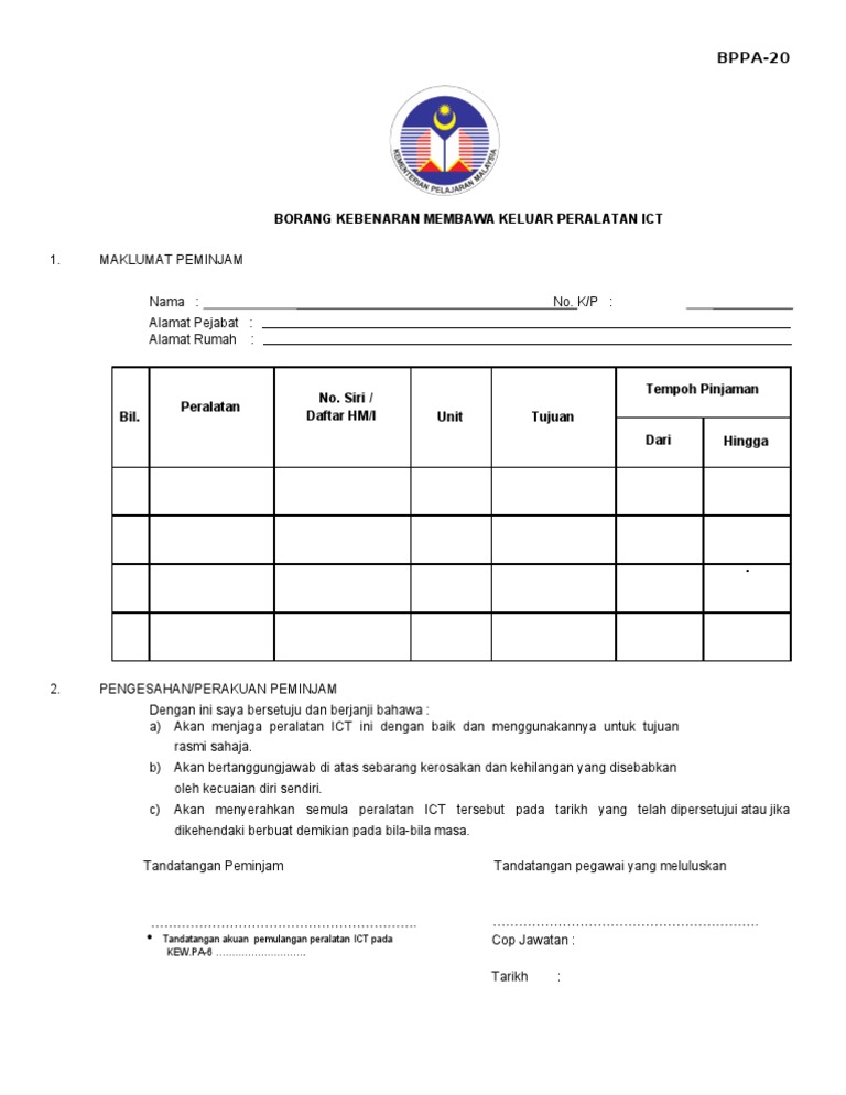 Borang Keluar Peralatan Ict Bppa 20 Doc