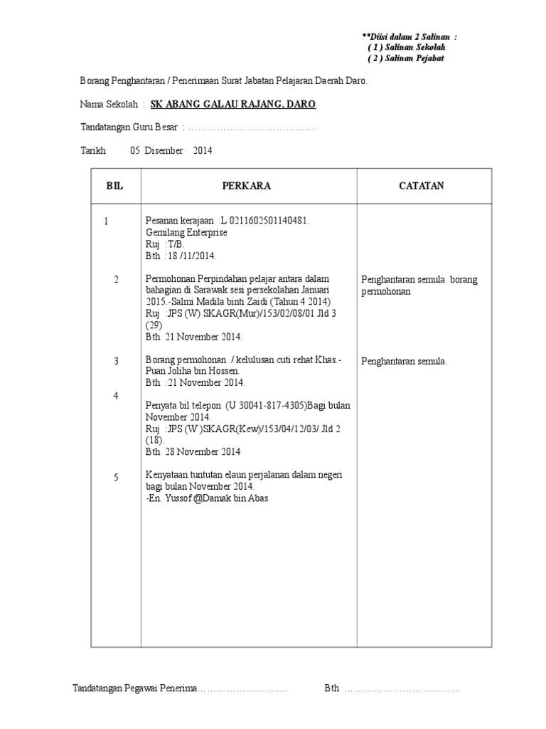 Borang Penghantaran Surat Keluar Doc