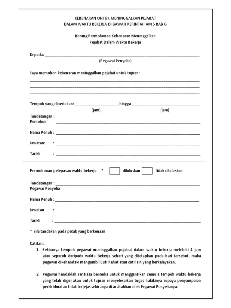 Borang Kebenaran Meninggalkan Pejabat Pdf