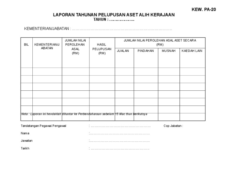 8 Kew Pa 8laporan Tahunan Harta Modal Inventori Doc Kew Pa 8 Laporan Tahunan Aset Tetap Dan Inventori Bagi Tahun U2026 U2026 U2026 Kementerian Bil Nama Aset Course Hero