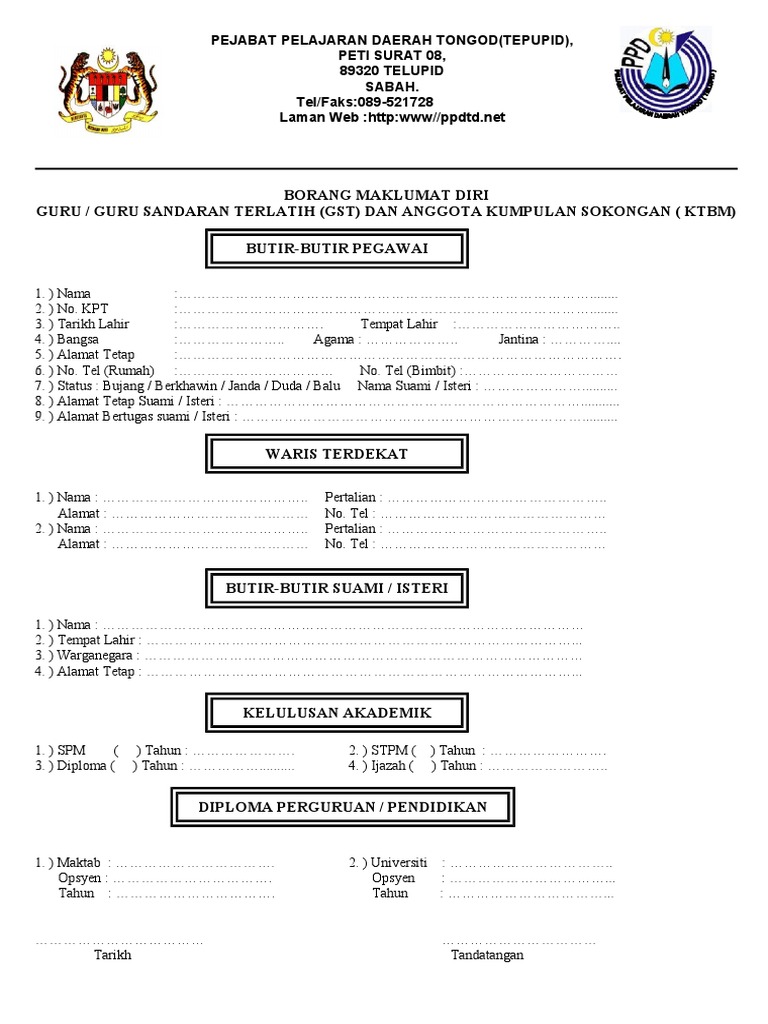 Borang Maklumat Diri Guru Pdp Pdf Document