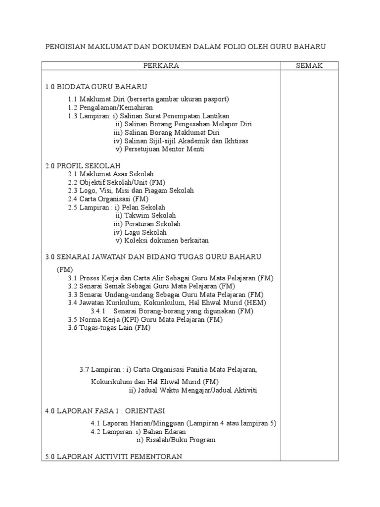 Pengisian Maklumat Dan Dokumen Dalam Folio Oleh Guru Baharu