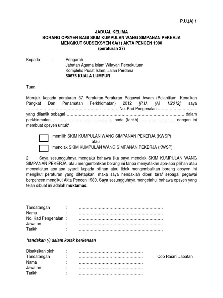 Borang Pengeluaran Kwsp Taraf Berpencen