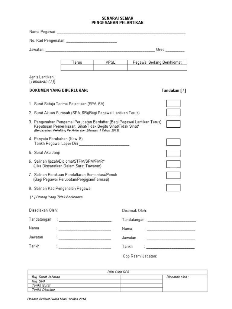 Senarai Semak Pengesahan Pelantikan