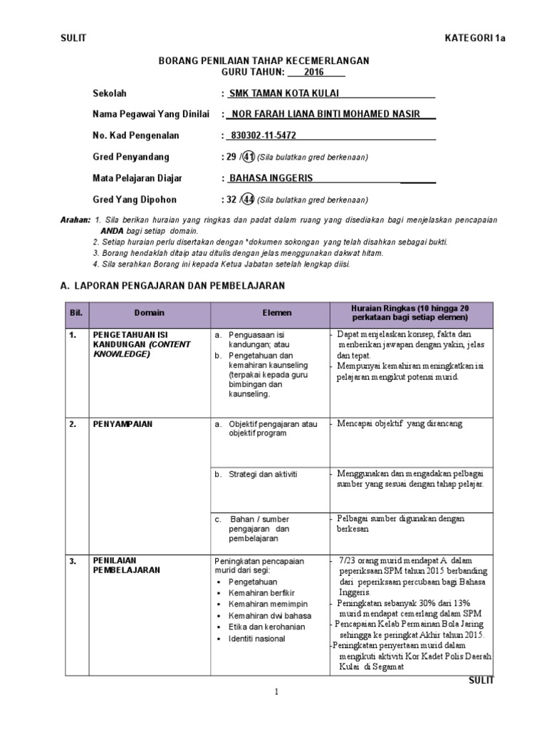 Penolong Kanan Contoh Pengisian Borang Penilaian Tahap Kecemerlangan Guru Dg52
