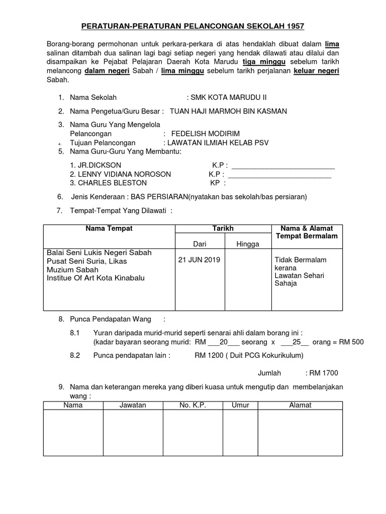 Contoh Surat Kebenaran Menggunakan Kenderaan