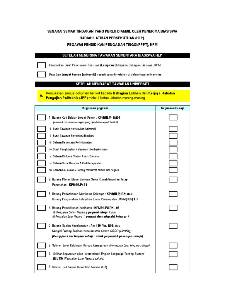 Borang Permohonan Cuti Belajar Bergaji Penuh Bagi Tawaran Hlp