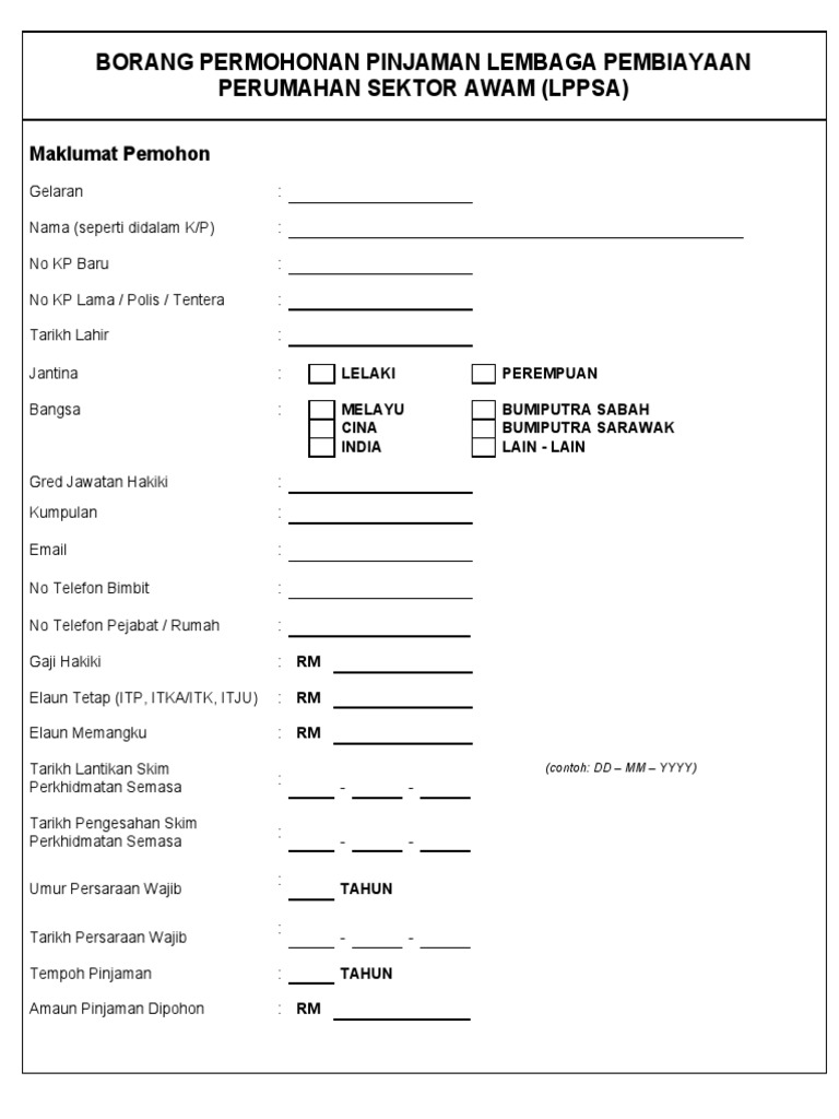 Pdf Borang Pinjaman Perumahan Lembaga Pembiayaan Perumahan Sektor Awam Poy L2000 Academia Edu