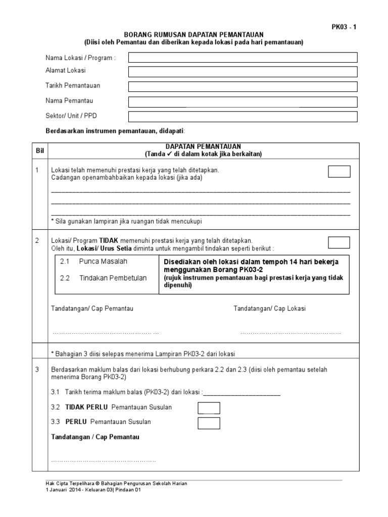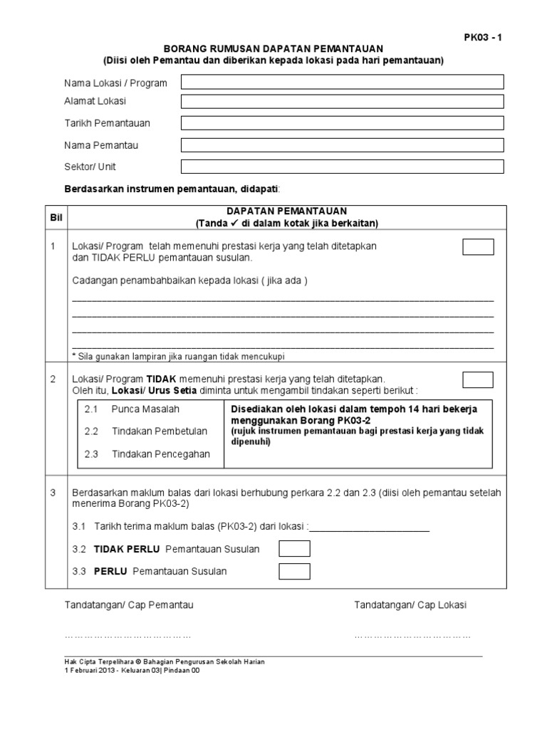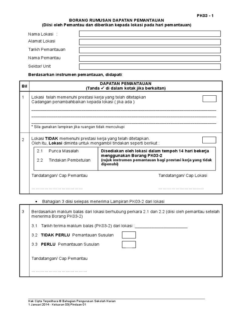 Pk03 1 Borang Rumusan Dapatan Pemantauan