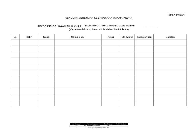 Borang Kawalan Kelas Pages 1 1 Text Version Anyflip