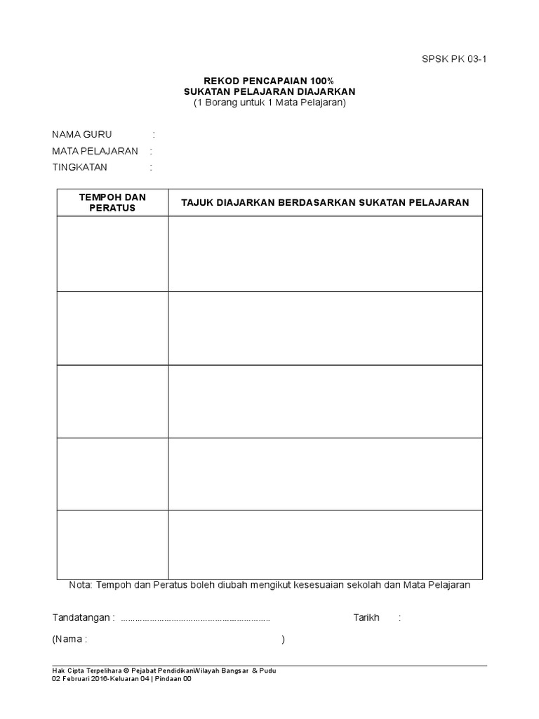 Pk03 1 Rekod Pencapaian 100 Kosong Doc
