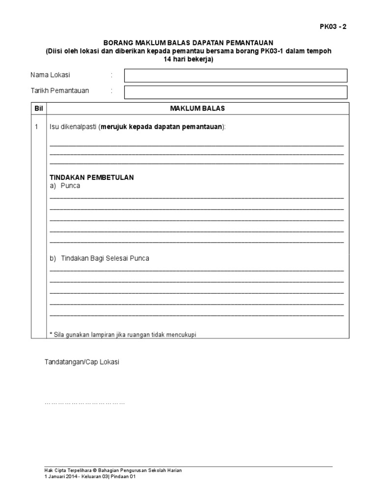Pk03 2 Borang Maklum Balas Dapatan Pemantauan Doc