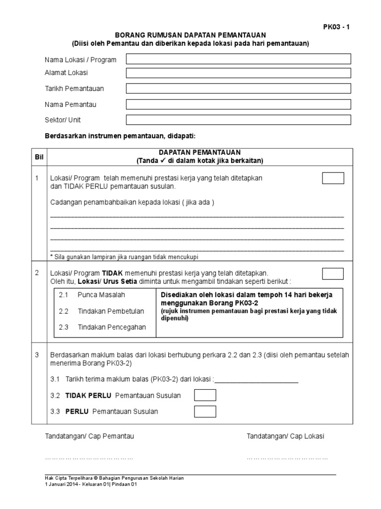 Pk03 1 Borang Rumusan Dapatan Pemantauan