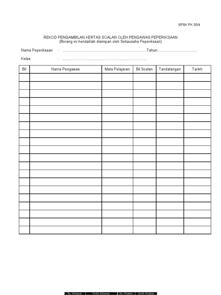 Borang Pk05 4 Rekod Pengambilan Kertas Soalan Oleh Pengawas Peperiksaan