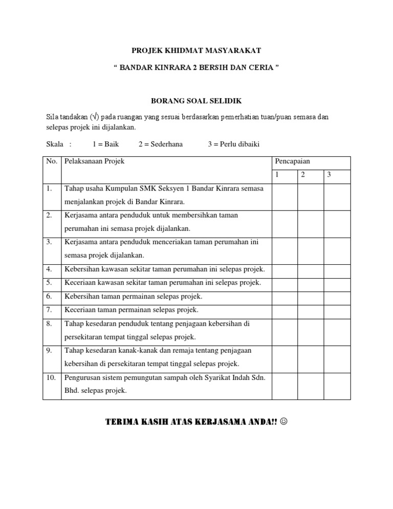 Contoh Soalan Borang Soal Selidik Tentang Perpaduan J Kosong W