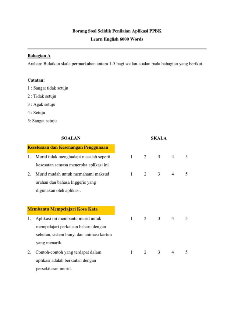 Borang Soal Selidik Tentang Pembelajaran Docx