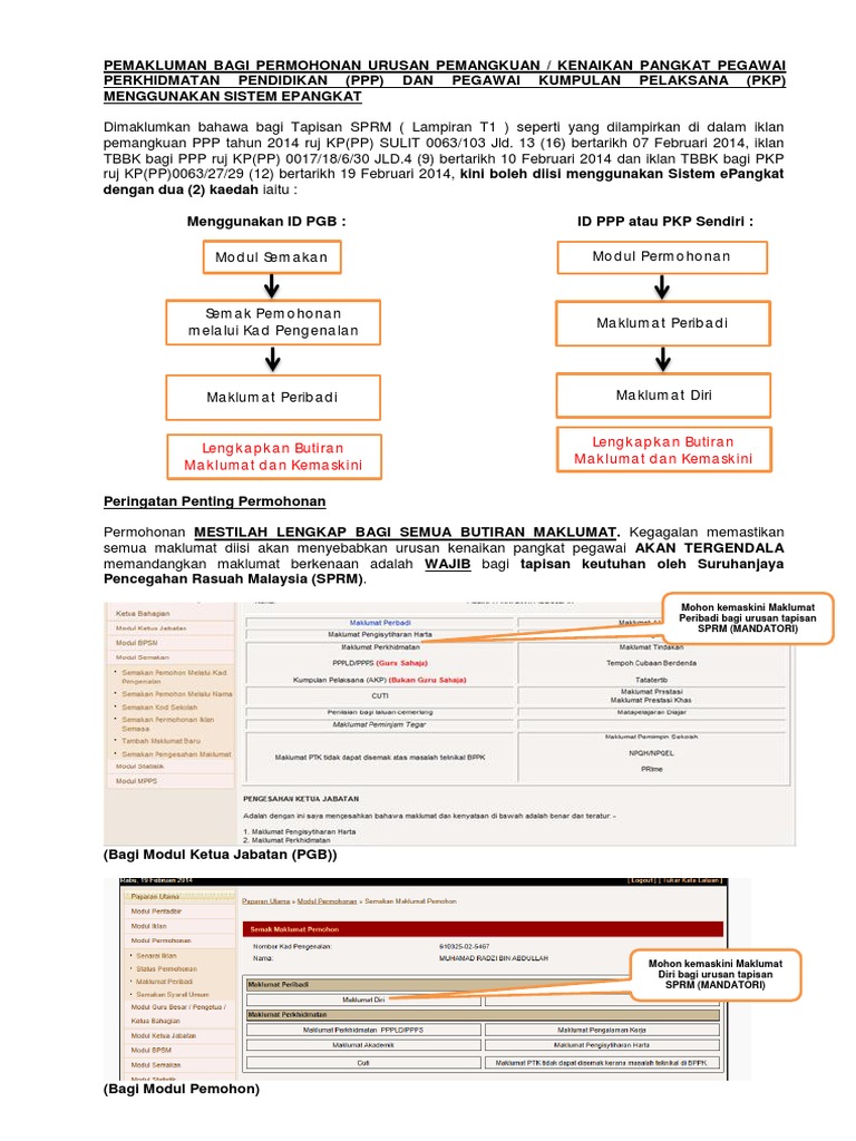Pemakluman Pengisian Maklumat Sprm Bagi Permohonan Urusan Pemangkuan Kenaikan Pangkat Bagi Ppp Dan Pkp Menggunakan Sistem Epangkat