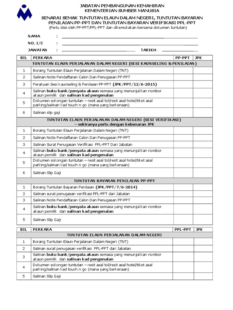 Senarai Semak Tuntutan Personel Ppt 20152017