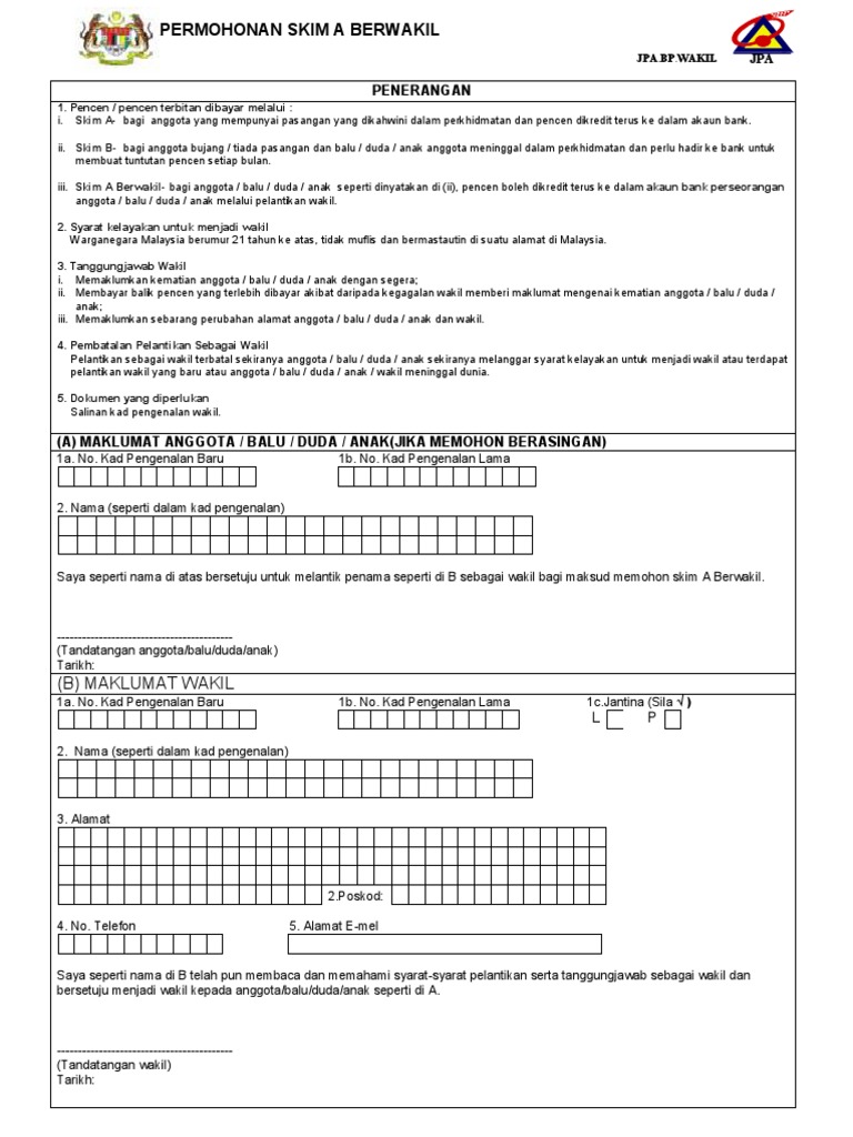 Borang Wakil Skim A Pencen