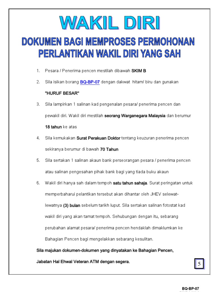 Dokumen Bagi Memproses An Perlantikan Wakil Diri Yang Sah
