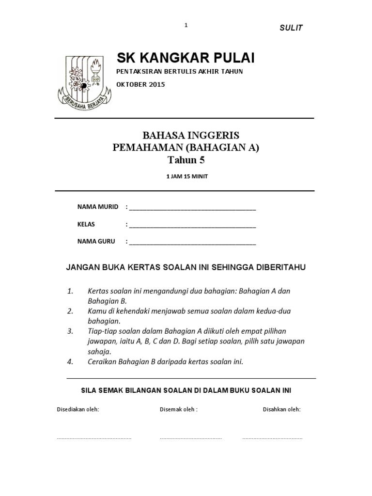 Bahasa Inggeris Pemahaman Year 5 Kssr