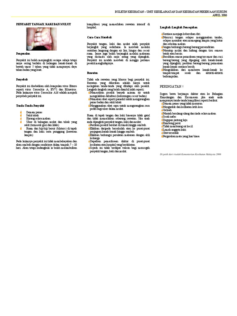 Penyakit Tangan Kaki Dan Mulut Hfmd