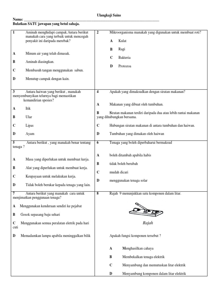 Brighter Brain Academy Sains Tahun 6 Ulangkaji Bab 1 4