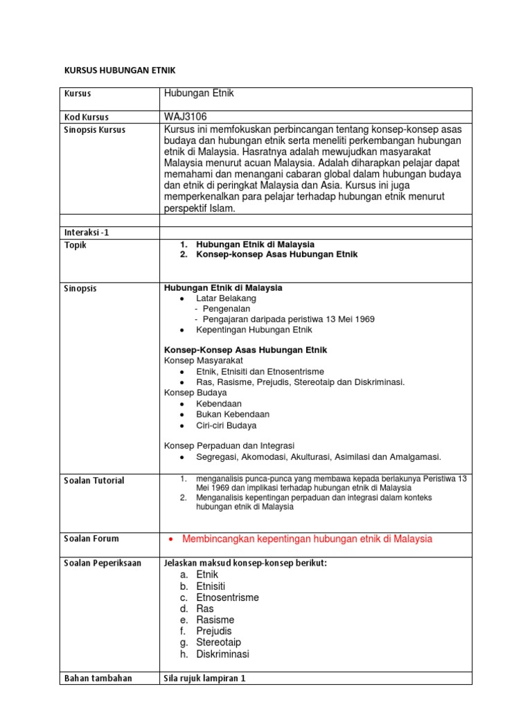 Hubungan Etnik Di Malaysia Dan Konsep Masyarakat Kuliah 1