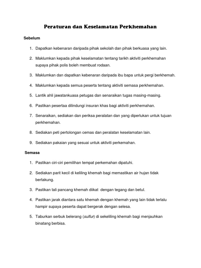 Peraturan Dan Keselamatan Perkhemahan