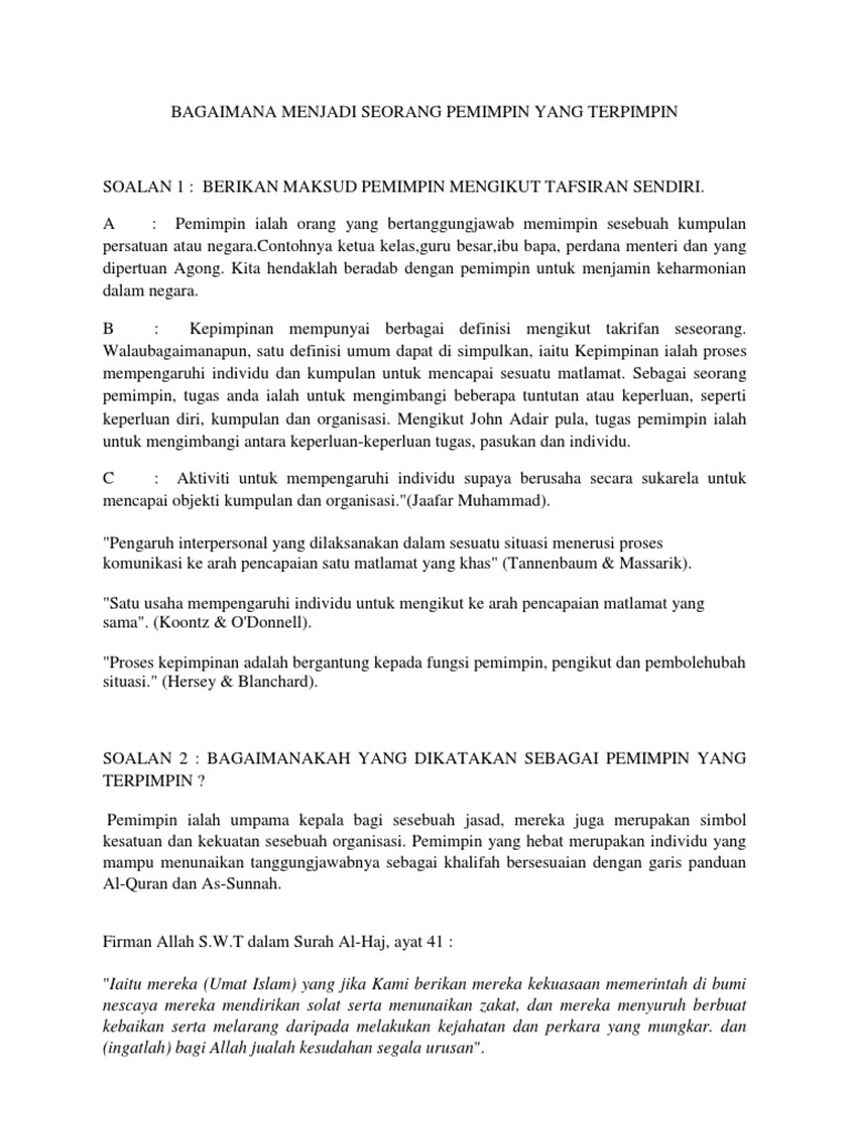 Pdf Pemimpin Dan Kepimpinan Menurut Perspektif Islam Mahani Abdullah Academia Edu