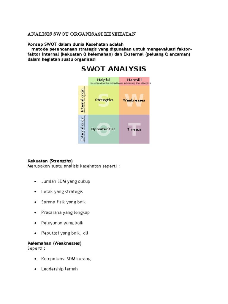 1 2 Rumusan Masalah 1 Bagaimana Implementasi Analisis Swot Dalam Bidang Kesehatan 2 Bagaimana Cara Analisis Swot Dengan Menggunakan Ms Excel Pdf Download Gratis
