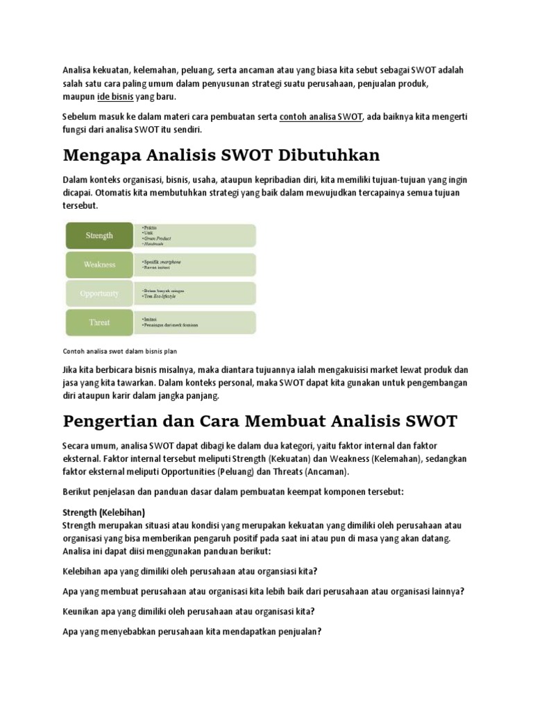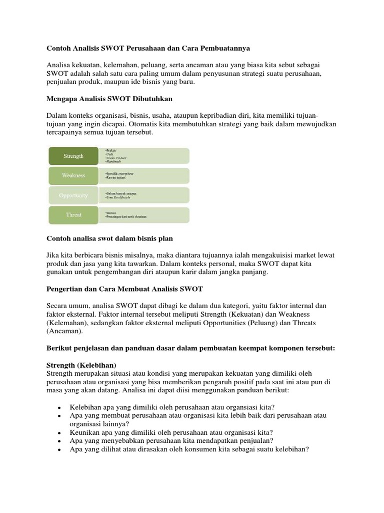 Contoh Analisis Swot Dalam Organisasi Rasmi Ri