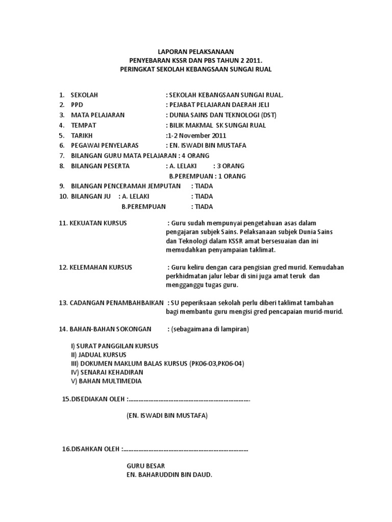 Format Laporan Eksekutif Guru Yang Berkursus Kssr
