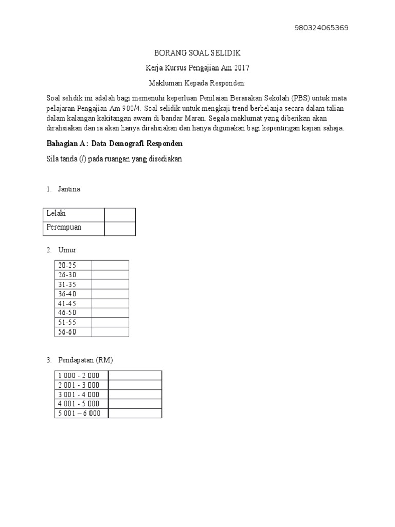 Doc Borang Soal Selidik Pa Joanne Leong Academia Edu