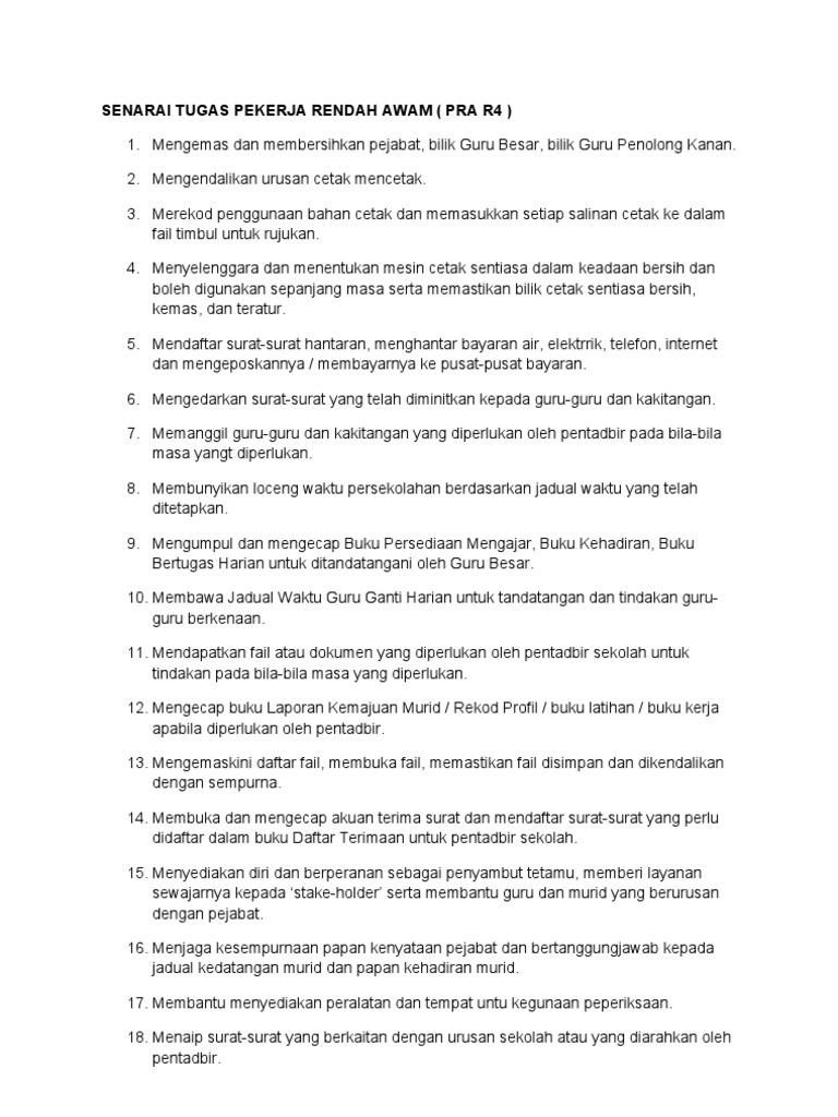 Senarai Tugas Pekerja Rendah Awam