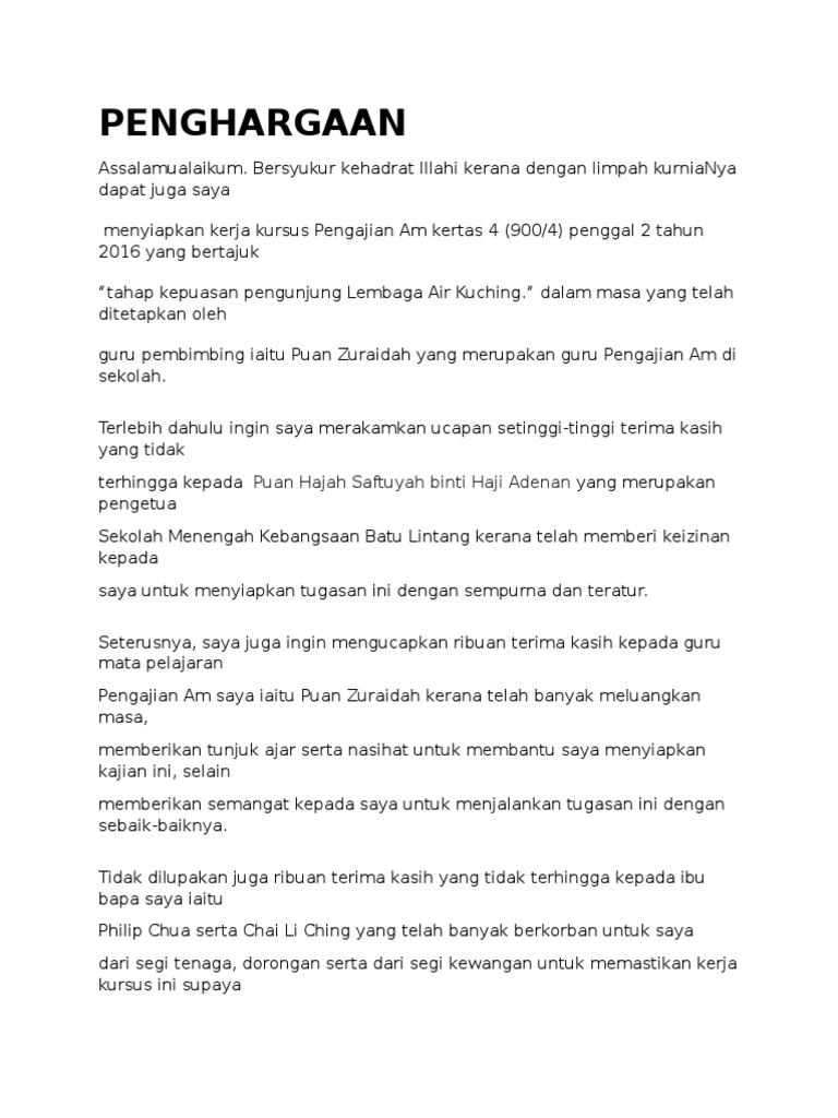 2018 Format Penulisan Kerja Kursus Pengajian Am Docx Format Penulisan Kerja Kursus Pengajian Am Penggal 2 Tingkatan 6 Tahun 2018 Item Abstrak Course Hero